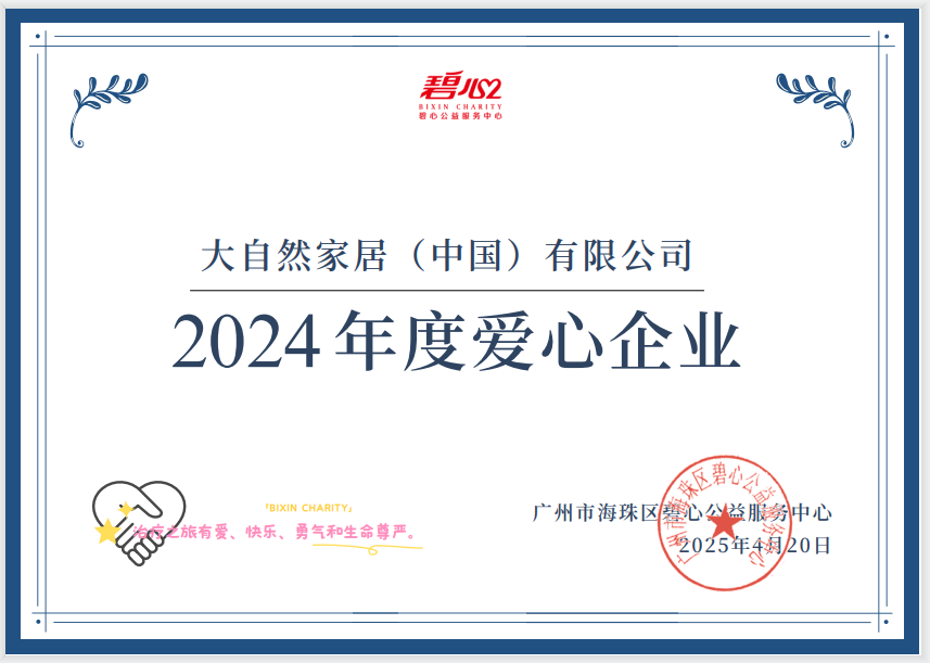 2025-04-28 | 獲頒感謝狀 | 從綠色家居到守護(hù)健康,大自然家居以愛之名行公益之路